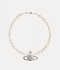 Plated in silver tones, the Man. Bas Relief Pearl necklace is hand-knotted with a row of Swarovski pearls that graduate in size. Set with our crystal-encrusted orb in the centre, it fastens with a lobster clasp closure. For longer product life, remember to always put this piece on as the 'finishing touch', after using perfumes, hair spray and make-up. If cosmetics are applied while wearing jewellery, they will build up on the surface, dulling its appearance. To clean this piece, please use lukewarm water with a small amount of mild washing-up liquid, then rinse with cold water and dab dry with a soft cloth. Material 100% Brass Code: 6301009902P104P104 Details & Features Total chain length: 52cm Orb dimensions: H 4cm x W 6.5cm Pearl dimensions: 6mm, 8mm and 10mm Weight: 84.4g Preciosa crystals