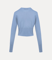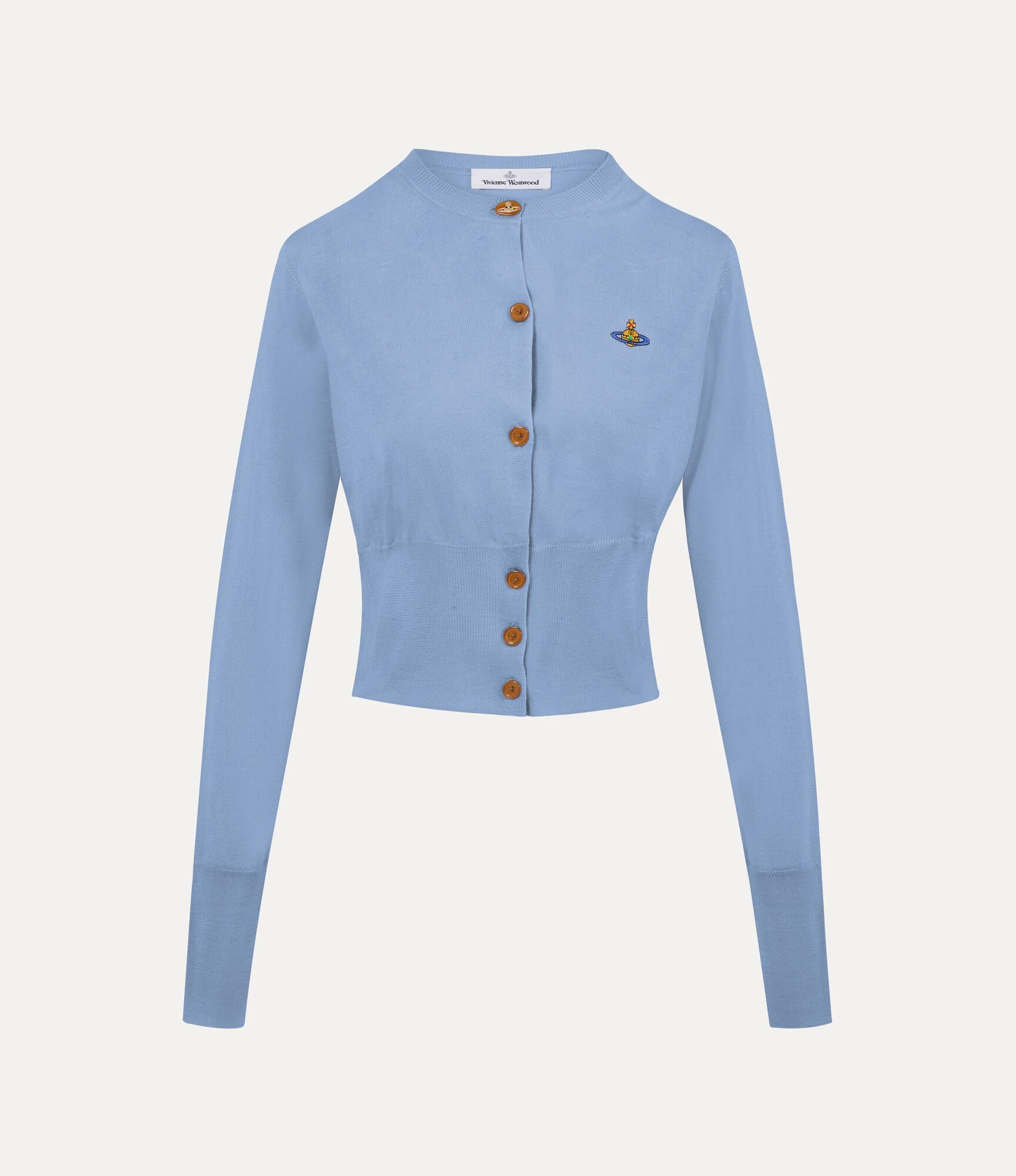 The Bea Cropped cardigan is a signature style of the house, reinterpreted this season in a soft organic cotton and finished with a multi-coloured embroidered orb emblem. The design features long sleeves and a round neckline, complete with a row of amber buttons, with the top button crafted in a larger, oval shape and engraved with the orb motif. Code: 1803002U-Y003F--FRENCH-BLUE - Features amber button fastenings - Round neckline - Ribbed trims - Cropped silhouette - Straight hem - Long sleeves - Classic orb embroidery - Roomy body - Made in Italy COMPOSITION - 100% Organic cotton