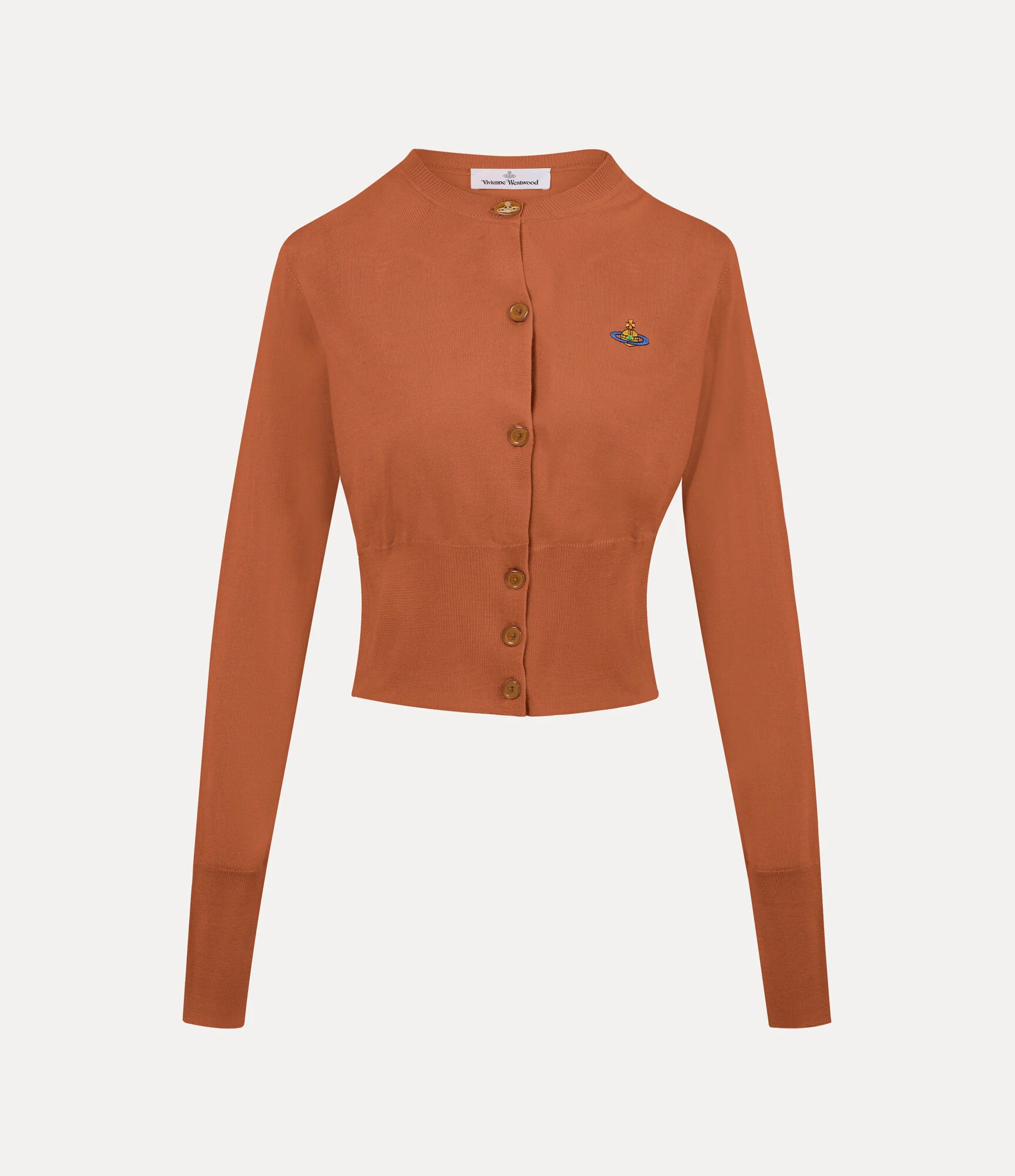 The Bea Cropped cardigan is a signature style of the house, reinterpreted this season in a soft organic cotton and finished with a multi-coloured embroidered orb emblem. The design features long sleeves and a round neckline, complete with a row of amber buttons, with the top button crafted in a larger, oval shape and engraved with the orb motif. Code: 1803002U-Y003F--TERRAROSA - Features amber button fastenings - Round neckline - Ribbed trims - Cropped silhouette - Straight hem - Long sleeves - Classic orb embroidery - Roomy body - Made in Italy COMPOSITION - 100% Organic cotton