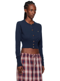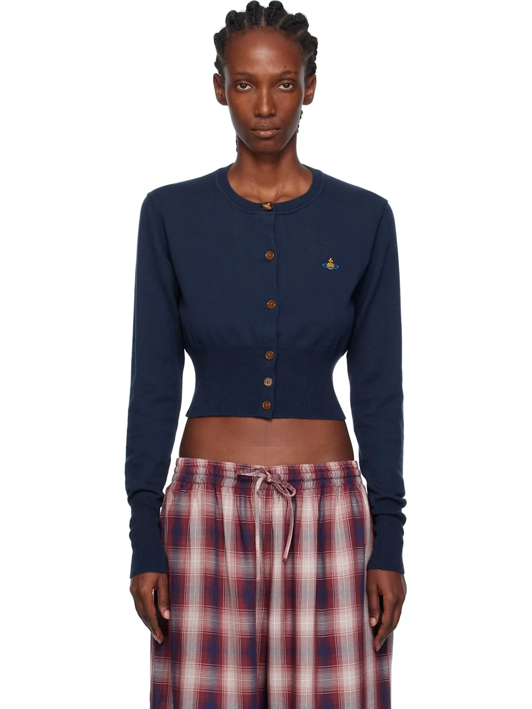 Knit organic cotton- and cashmere-blend cardigan. · Rib-knit crewneck, hem, and cuffs · Button closure · Embroidered logo at chest · Cropped hem Supplier color: Navy 85% organic cotton, 15% cashmere. Made in Italy 252314F095002
