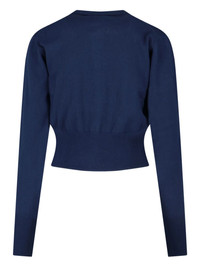Orb-embellished buttoned cardigan Highlights - Navy blue - Orb emblem - Button fastening - Ribbed hem - Long sleeves - Crew neck Made in Italy Composition Wool 70%, Silk 30% Washing instructions Read Manufacturer Guidelines