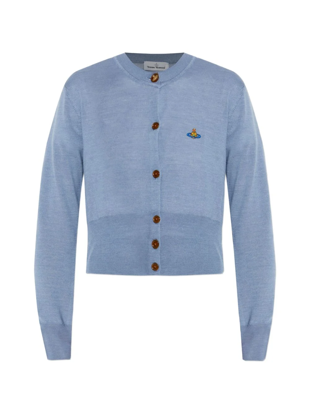 buttoned logo cardigan Highlights - Light blue - Button fastening - Logo detail - Round neck - Long sleeves - Ribbed hem Made in Italy Composition Wool 70%, Silk 30% Washing instructions Read Manufacturer Guidelines