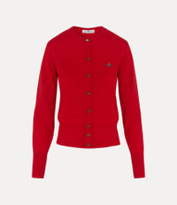 Our Bea cardigan in merino wool with a round neckline features a fitted silhouette, topped with amber-coloured buttons. Our embroidered orb is displayed on the chest, a motif used throughout the house's history to symbolise launching tradition into the future. Code: 1803002P-Y0006-AAA--RED - Ribbed trims - Long sleeves - Straight hem - Roomy body - Woven label at neckline - Lightweight - Fits true to size - Made in Italy - Model is 5’11/180cm and is wearing a size S COMPOSITION - 100% Wool