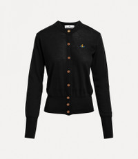 Our cotton-knit Bea cardigan with a round neckline features a fitted silhouette, topped with amber-coloured buttons. Our embroidered orb is displayed on the chest, a motif used throughout the house's history to symbolise launching tradition into the future. Code: 1803002P-Y001V--BLACK - Ribbed trims - Long sleeves - Straight hem - Roomy body - Woven label at neckline - Lightweight - Fits true to size - Made in Italy - Model is 5’11/180cm and is wearing a size S COMPOSITION - 100% Cotton