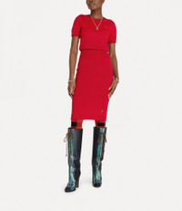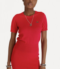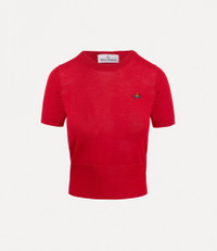 Our Bea top has been refreshed this season. Forming part of our classic collection, this short-sleeved top in a wool-silk blend features ribbed trims and an embroidered multicoloured orb on the chest, developed by Vivienne Westwood in the 1980s. Code: 1803002Q-Y001A-RED - Straight hem - Round neckline - Made in Italy - Lightweight - Fits true to size - Woven label at neckline COMPOSITION - 70% Merino Wool - 30% Silk