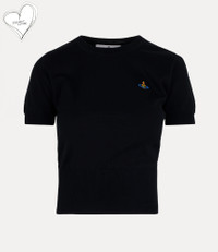 Knitted from organic cotton, the Bea top in black has a short-sleeved silhouette and is embroidered with a multicoloured orb on the chest. It has ribbing on the neckline and hem for a more fitted shape. Organic farming has a low impact on the environment and is grown without the use of harmful chemicals and pesticides. Material 100% Organic Cotton Code: 18030009Y0003N402 Details & Features Round neckline Ribbed hem and neckline Short-sleeved Orb embroidery