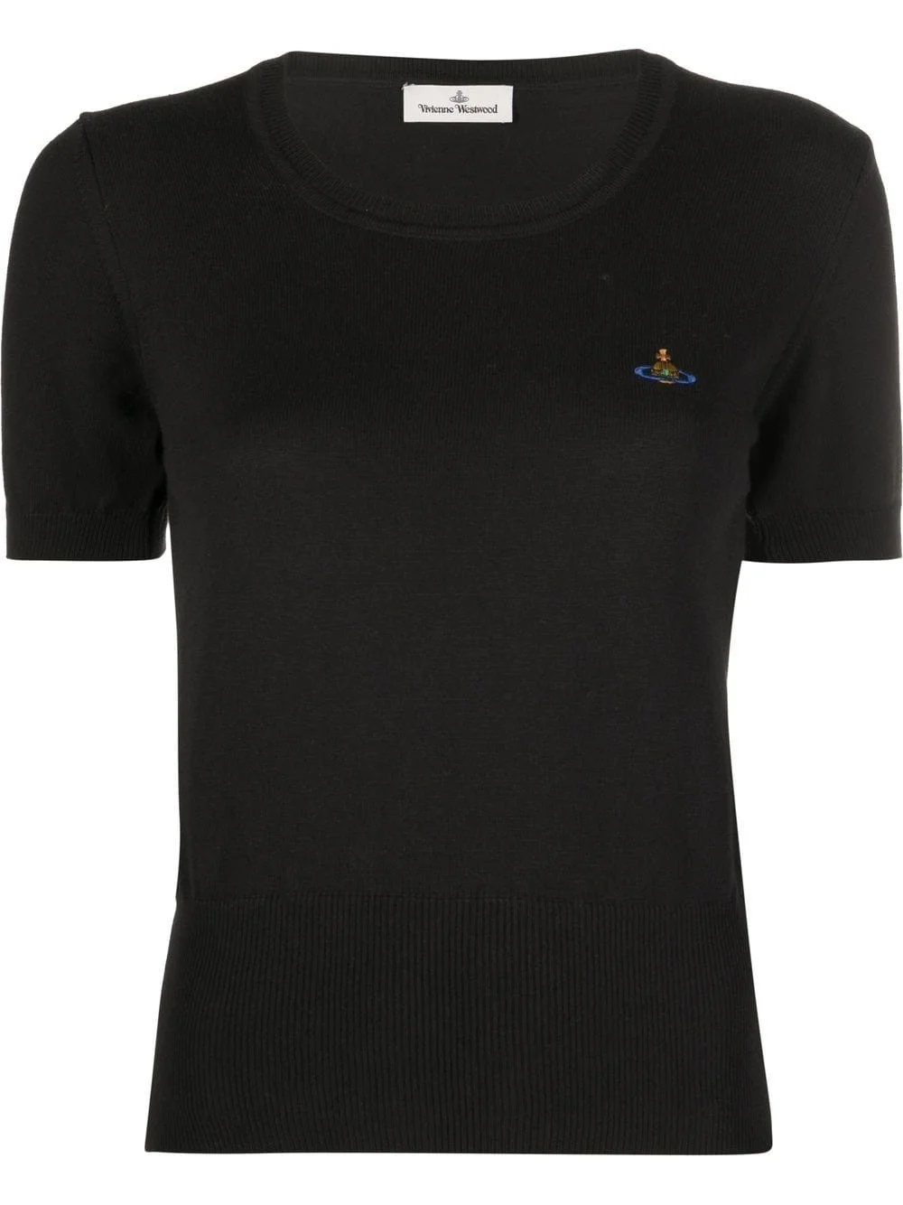 Bea Orb-embroidered knitted top black cotton-cashmere blend knitted construction signature Orb logo embroidery crew neck short sleeves ribbed cuffs ribbed hem Made in Italy Composition Cotton 85%, Cashmere 15% SIZE & FIT Model measurements Height 5 ft 11 in(1.8 m) Bust/Chest 31.49 in(80 cm) Hips 35.43 in(90 cm) Waist 25.19 in(64 cm) Measurement BUST 31.49 in(80 cm) LENGTH 20.47 in(52 cm) SLEEVE LENGTH 7.87 in(20 cm) Shoulder Width 12.99 in(33 cm) FittingInformation This piece fits true to size. We recommend you get your regular size Cut for a slim fit Made with a mid-weight fabric Washing instructions Hand Wash