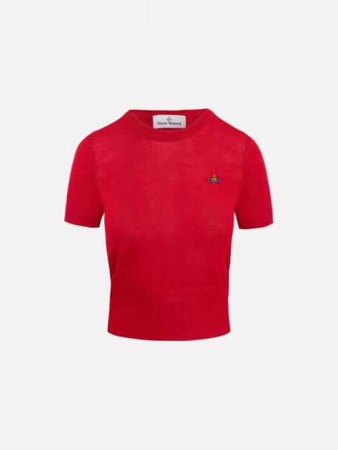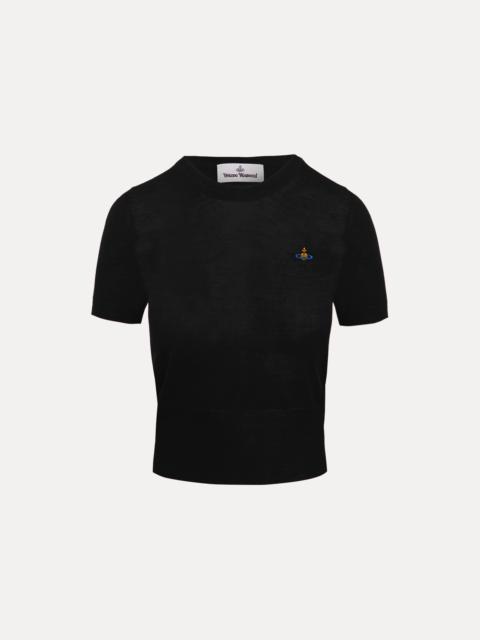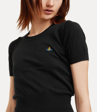 Our Bea top has been refreshed this season. Forming part of our classic collection, this short-sleeved top in cotton cashmere features ribbed trims and an embroidered multicoloured orb on the chest, developed by Vivienne Westwood in the 1980s. Code: 1803002Q-Y001V--BLACK - Straight hem - Round neckline - Made in Italy - Lightweight - Fits true to size - Woven label at neckline COMPOSITION - 85% Cotton - 15% Cashmere