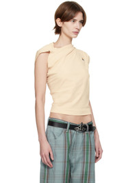 Organic cotton jersey T-shirt. Draping throughout. · Asymmetrical construction · Boat neck · Logo embroidered at chest · Cap sleeves Supplier color: Beige 100% organic cotton. Made in Tunisia 251314F110019