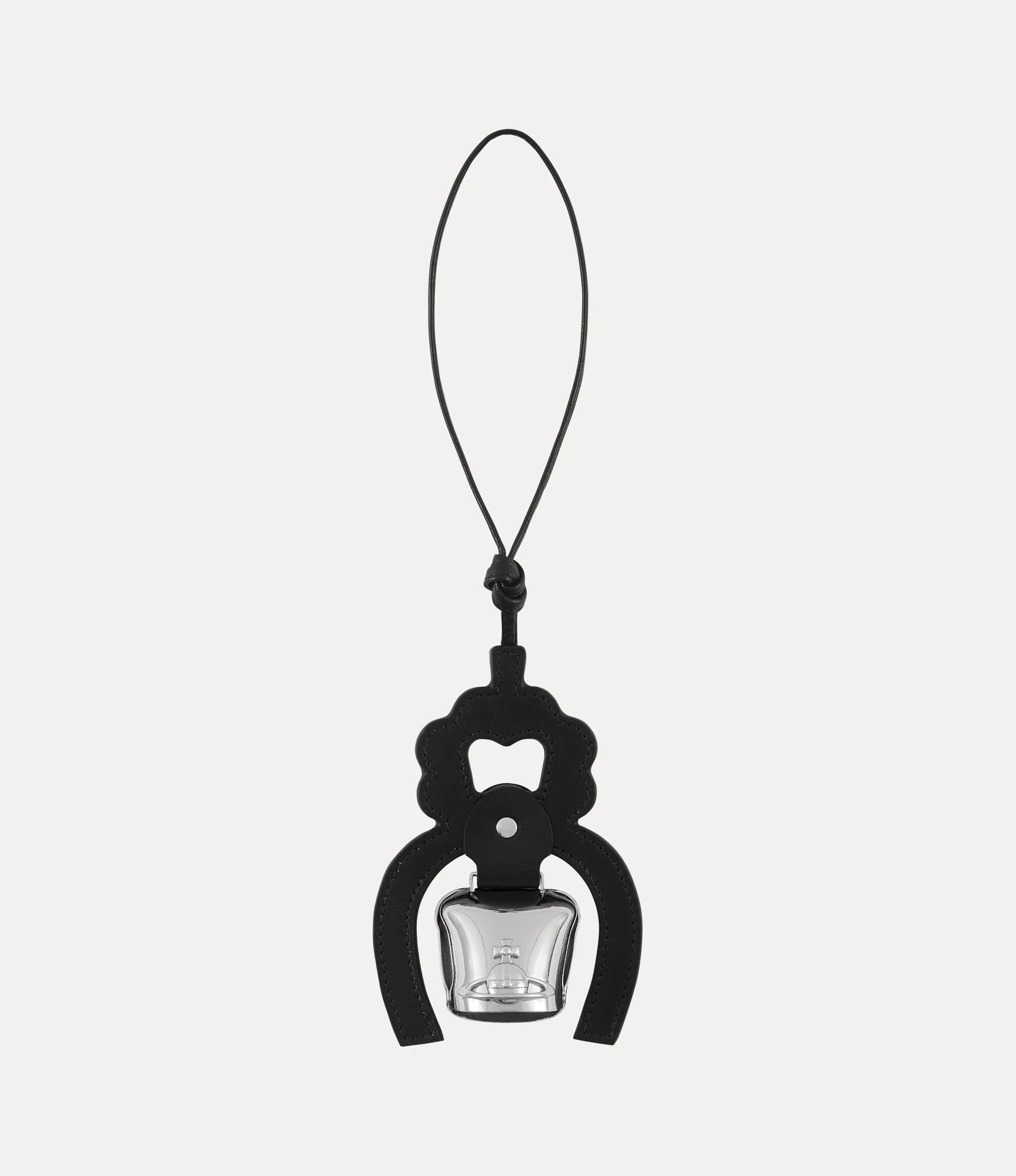 This season’s Bell charm draws inspiration from traditional Austrian bells and the festive Almabtrieb celebration. The design features a central bell framed by a horseshoe-shaped leather design - a nod to the decorated cows of the Alpine festival. The charm loops securely over itself and is finished with the house’s three-dimensional orb, embodying the ethos of launching the past into the future. Code: 8053195237050 - Features a knotted loop closure - Smooth leather - Silver-toned hardware - Polished finish - Three-dimensional orb motif - Horseshoe motif - Fully functioning bell - Total length measures 10cm - Made in Italy COMPOSITION - Main material: 100% cow leather - Hardware: silver-toned plated brass