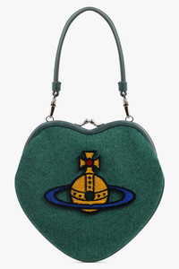 A playful yet refined take on one of the house’s iconic shapes, the Belle Heart Frame Orb Purse in Green/Multi features a sculptural heart silhouette crafted in softly mottled wool. The multicoloured tufted Orb at the front provides a vibrant focal point, while the kiss-lock frame adds vintage-inspired charm. A removable chain strap and structured top handle allow effortless transitions from day to evening styling. - Fabrication: - Main material: 100% wool, Lining: 100% cotton - Heart-shaped silhouette with kiss-lock fastening - Removable chain strap for versatile styling - Detachable structured top handle - Compact size ideal for essentials Style it with tonal tailoring or bold evening pieces to showcase its playful, collectible appeal. Measurements Height: 20cm, Width: 20cm, Depth: 4cm