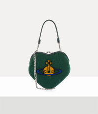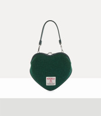 The signature Belle Heart Frame purse returns this season in plain wool, expertly mottled to reflect Harris Tweed’s distinctive texture. Featuring the house’s classic heart-shaped silhouette, it’s finished with our iconic multi-coloured orb motif, reinterpreted in this season’s tufted finish. Code: 8053195303908 - Features a kiss-lock fastening - Heart-shaped silhouette - Tufted orb motif - Removable chain strap - Top-handle design - Compact size - 'Union Jack' interior lining - Detachable structured top handle - Height 20cm, width 20cm, depth 4cm COMPOSITION - Main material: 100% wool - Lining: 100% cotton