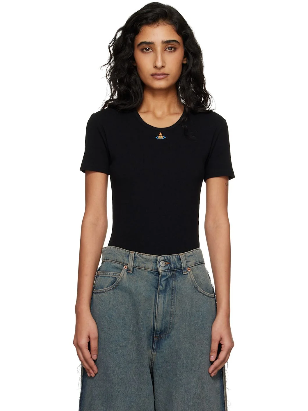Ribbed stretch cotton jersey bodysuit. · Crewneck · Logo embroidered at chest · Press-stud fastening at bottom Supplier color: Black 95% cotton, 5% elastane. Made in Tunisia 261314F358001