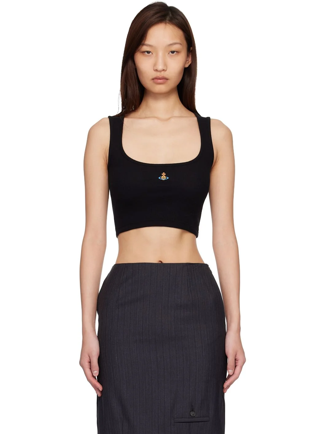 Stretch cotton ribbed jersey tank top. · Square neck · Logo embroidered at chest · Cropped hem Supplier color: Black 95% cotton, 5% elastane. Made in Tunisia 261314F111019
