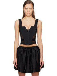 Viscose crepe corset-style top. · Paneled construction · Boning throughout · Modified sweetheart neck · Zip closure at front · Fixed shoulder straps · Mesh panels at side seams · Full logo-woven lining Supplier color: Black Body: 100% viscose. Trim: 84% polyamide, 16% elastane. Lining: 100% cotton. Made in Portugal 252314F111012