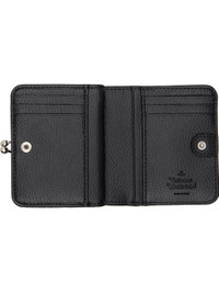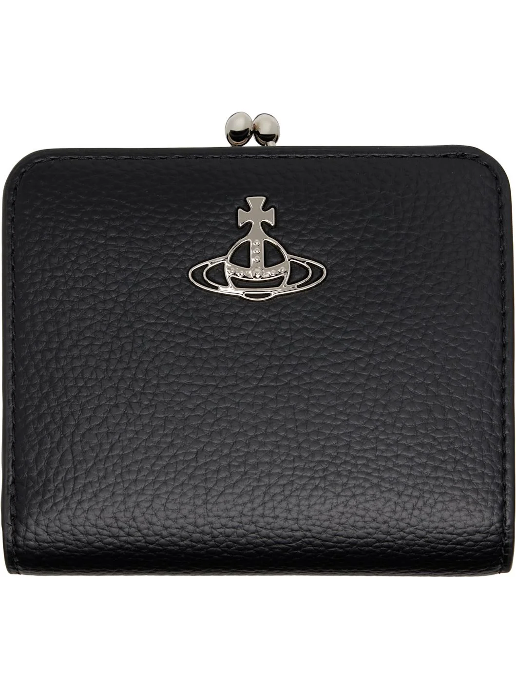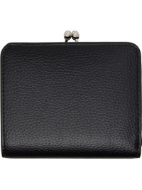 Pebble-grained faux-leather bifold wallet. · Logo hardware at face · Kiss-lock coin pouch at back face · Press-stud closure · Six card slots and four patch pockets at interior · One note slot · Twill lining · Silver-tone hardware · H3.75" x W4.5" x D1.25" Supplier color: Black Synthetic. Made in Italy 252314F040001