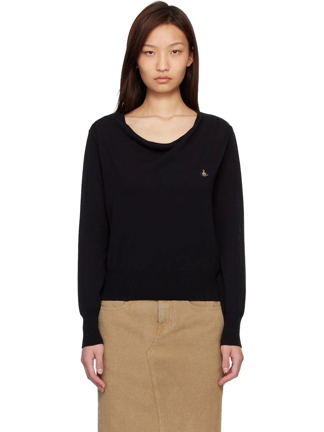 Knit organic cotton sweater. · Rolled edge at boatneck · Logo embroidered at chest · Rib-knit hem and cuffs · Dropped shoulders · Rib-knit trim at back collar Supplier color: Black 100% cotton. Made in Italy 261314F096004