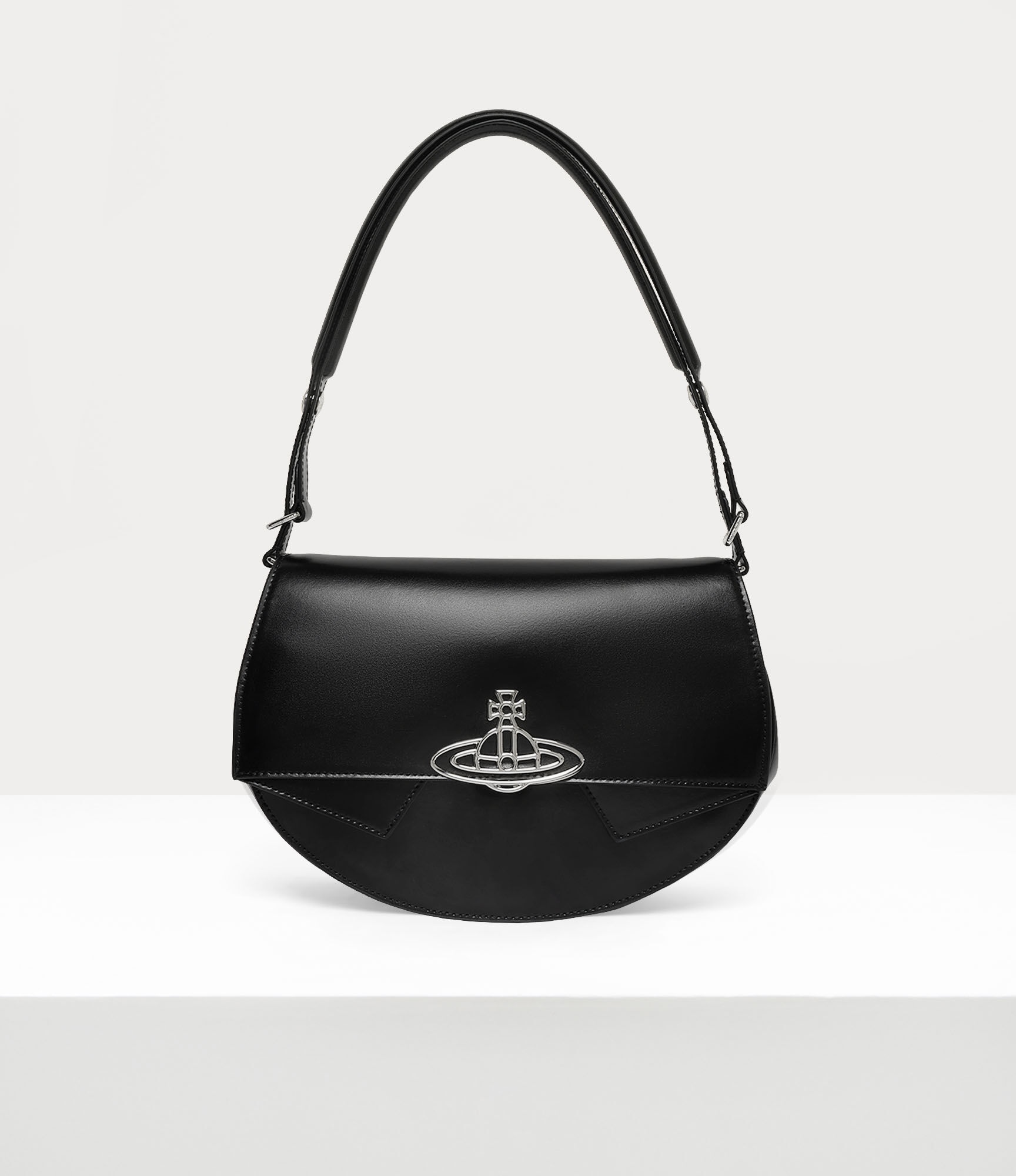 The design of our Sadie Shoulder bag draws inspiration from origami, featuring an intricately folded front-flap silhouette. The piece offers the signature 'baby orb' lining, first introduced in the Vivienne Westwood Spring-Summer 2023 collection, complete with the house's updated 'line orb' motif on the magnetic press-stud fastening - reflecting Vivienne's vision of taking tradition into the future. Code: 8053195064205 - Features two interior compartments - Smooth leather finish - Top-handle shape - Adjustable strap - Curved gussets - Silver-tone metal details - Length 25cm, height 18cm, depth 6cm - Made in Italy COMPOSITION - 100% Leather