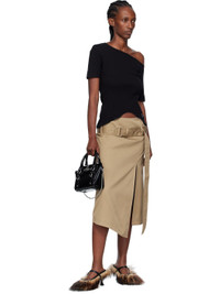 Ribbed stretch cotton jersey T-shirt. · Off-the-shoulder construction · Darts at chest · Logo embroidered at front hem · Asymmetrical hem · Twisted side seams Supplier color: Black 95% cotton, 5% elastane. Made in Tunisia 252314F110011