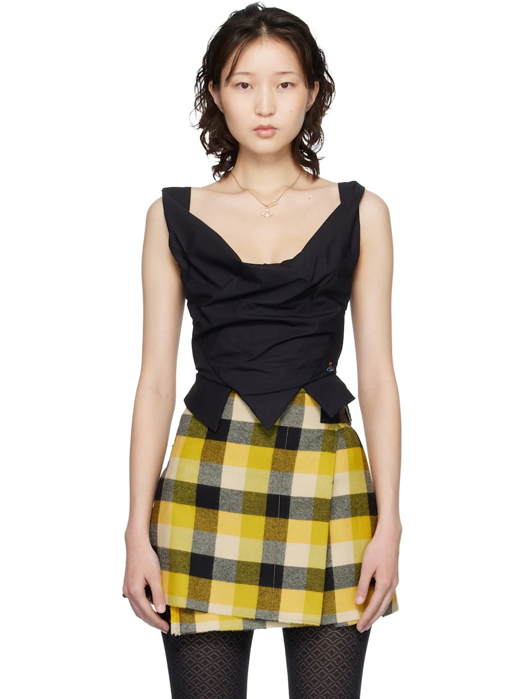 Cotton poplin top. · Plunging cowl neck · Draping at front · Logo embroidered at front hem · Notched peplum hem · Zip closure at back Supplier color: Black 100% cotton. Made in Italy 261314F111009
