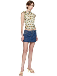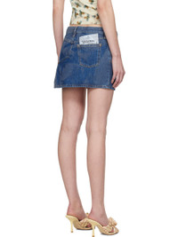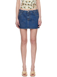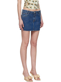 Non-stretch organic cotton denim miniskirt. Reflective graphic pattern sprayed throughout. · Belt loops · Four-pocket styling · Zip-fly · Logo patch at back · Vent at back hem · Logo-engraved hardware · Contrast stitching in tan Supplier color: Blue 100% organic cotton. Made in Italy 251314F090006