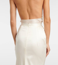 Designed, sampled, and hand-crafted in England, Vivienne Westwood's bridal collection is for the most memorable moments. The Cora maxi skirt features a soft silk-blend lining and a flared silhouette with a floor length. Product Details - Material: 57% acetate, 37% polyamide, 6% elastane - Care instructions: dry clean - Made in the UK - Designer color name: Ivory - Item color: white - Material II: 100% polyamide - Lining: 93% silk, 7% elastane - Closure: invisible zipper - Includes: garment bag - Item number: P01104650 Size & Fit - True to size - Sizing adapted to taller women - Non-stretchy fabric - High-waisted - The model seen in the picture is 178cm-5'10" and wearing a size UK 8