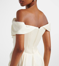 Vivienne Westwood’s Nova Cocotte bridal gown is proof that the brand’s signature corsetry remains unparalleled to this day. Made from heavy satin, this full-length dress has an off-shoulder silhouette and concealed zip fastening at the back. Product Details - Material: 73% acetate, 27% viscose - Care instructions: dry clean - Made in the UK - Designer color name: Cream - Item color: ivory - Lining: 100% silk - Contains non-textile parts of animal origin - Item number: P01048001 Size & Fit - True to size - Off-the-shoulder - Internal boned corset for support - Cinched waist - Non-stretchy fabric - slit length 60cm-23.5" - The model seen in the picture is 178cm-5'10" and wearing a size UK 8