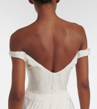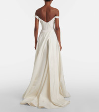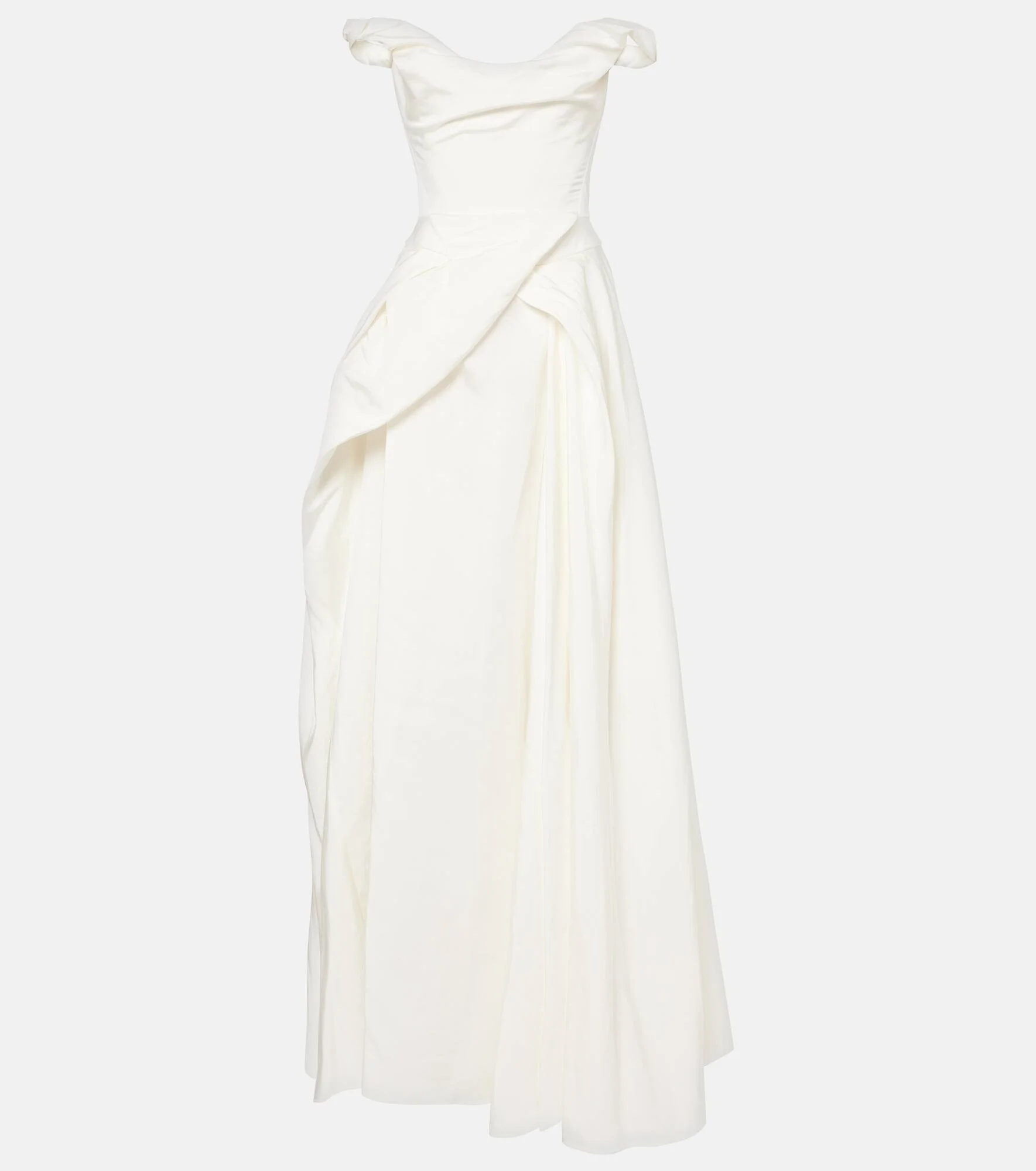 Product Details - Material: 53% viscose, 24% wool, 23% cotton - Care instructions: specialist clean - Made in the UK - Designer color name: Ivory - Comes with garment bag - Closure: concealed zipper, hook fastening - Lining: 100% silk - Item number: P01001294 Size & Fit - True to size - Internal boned corset for support - Cinched waist - Non-stretchy fabric - slit length 123,0cm-48.5" - The model seen in the picture is 178cm-5'10" and wearing a size UK 8