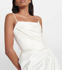 Romantic at every turn, the Venuys minidress from Vivienne Westwood is the perfect option for the modern bride. It is crafted from draped satin, with delicate floral embellishment at the bust. Product Details - Built-in bustier - Made in the UK - Comes with garment bag - Material II: 20% viscose, 50% polyamide, 30% polyester - Care instructions: specialist clean - Designer color name: Ivory - Closure: invisible zipper, zipper, hook fastening - Material: 57% acetate, 6% elastane, 37% polyamide - Item number: P00733717 Size & Fit - Fits small to size - we recommend trying one size larger - Internal boned corset for support - Cinched waist - Mid-weight material - The model seen in the picture is 178cm-5'10" and wearing a size UK 10
