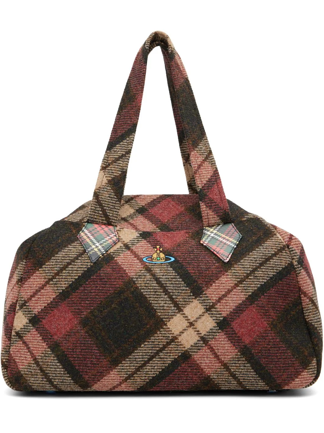 Hand-woven virgin wool Harris Tweed® tote. · Check pattern throughout · Twin carry handles · Logo embroidered at face · Logo patch at side · Bumper studs at faux-leather base · Press-stud closure at throat · Patch and zip pocket at interior · Canvas lining · Logo-engraved silver-tone hardware · H10.5" x W20" x D7.5" Supplier color: Light check Wool. Made in Italy 252314F048071