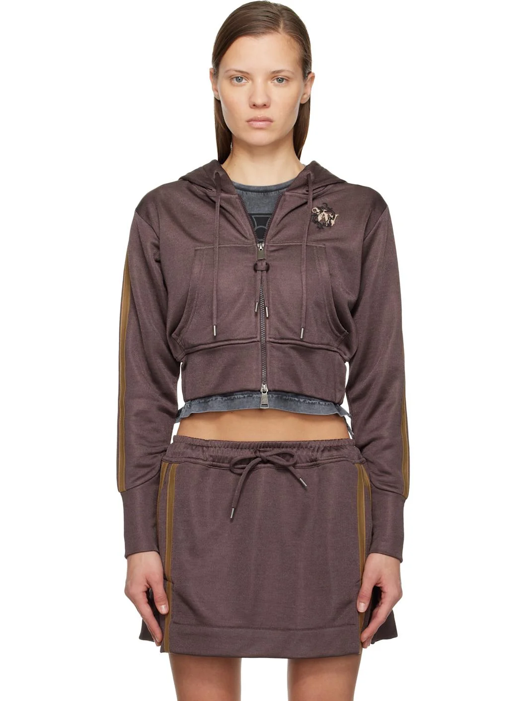 French terry hoodie. · Drawstring at hood · Zip closure · Logo embroidered at chest · Patch pockets at front · Rib-knit hem and cuffs · Striped trim at sleeves Supplier color: Brown 56% polyester, 44% cotton. Made in Turkey 252314F097001