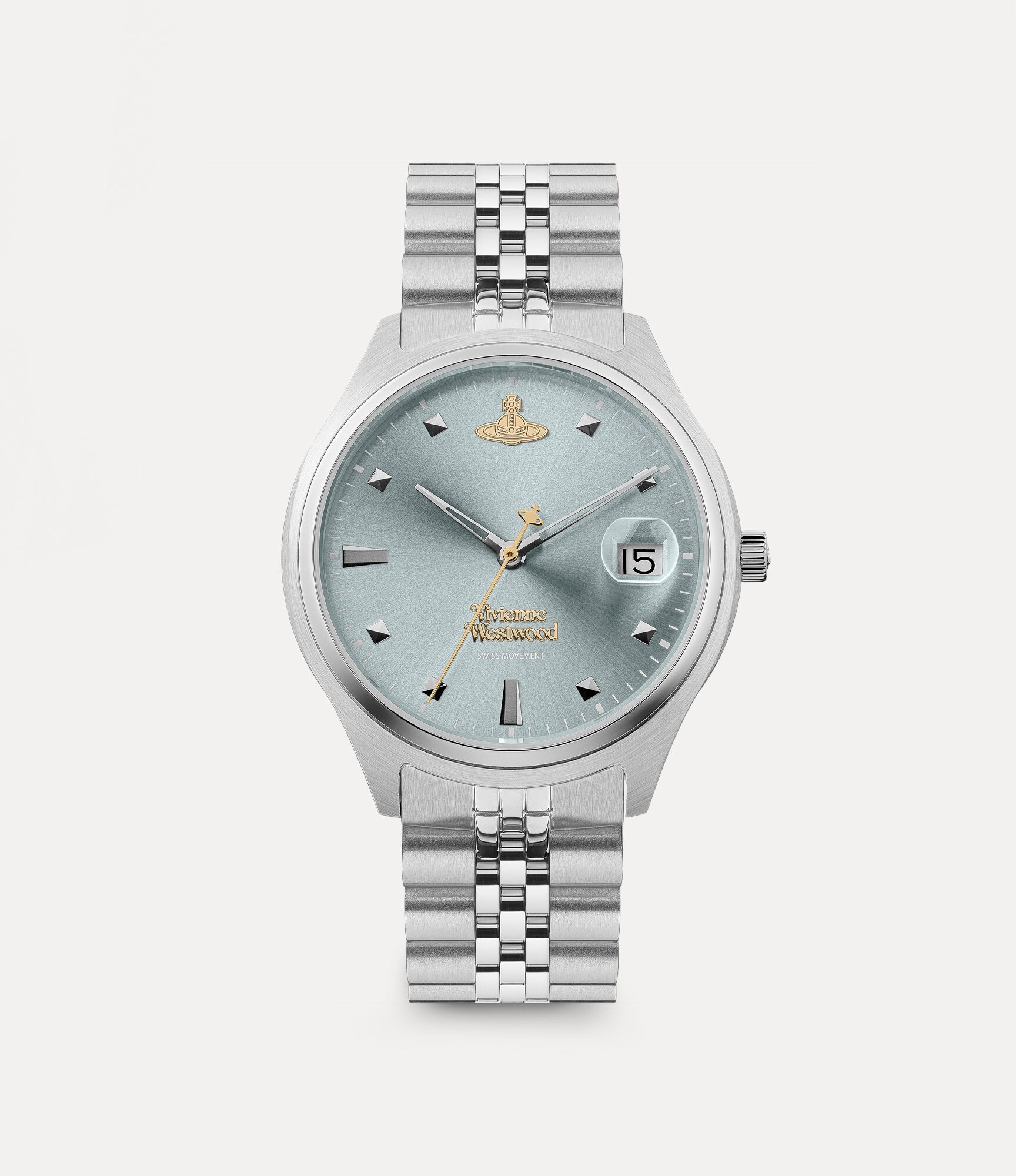 Constructed from stainless steel, the Camberwell watch is named after the borough in south London, known for its art markets and Goldsmiths College. With a round date window at the three o'clock mark, it features a blue dial and a chain-link strap that fastens with a butterfly buckle. Please note that this watch comes in a gift box and has a two-year guarantee. Material 100% Stainless Steel Code: VV261LBLSLXXXBLSL Details & Features Face Dimensions: H 3.7cm x W 3.7cm