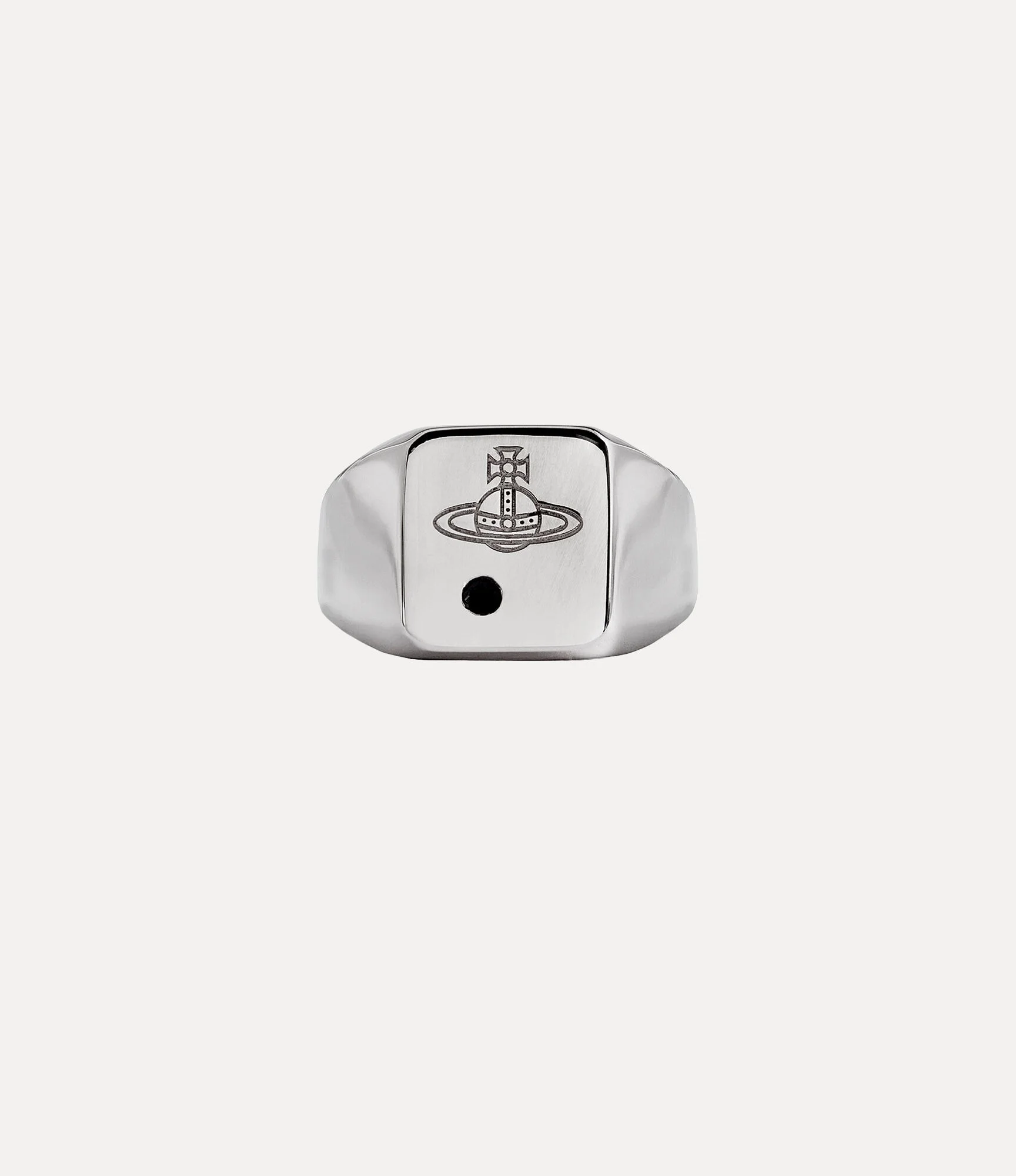 The Carlo ring in recycled silver cuts a signet silhouette and features a structured square-shaped face engraved with our orb motif. Code: 6404015I-01P171-SM-PLATINUM-BLACK-CZ - Crystal detailing - Silver-tone plating - Thick band design - Signet silhouette - Face height: 1.5cm COMPOSITION - 100% Recycled silver