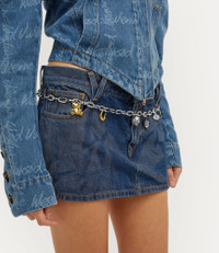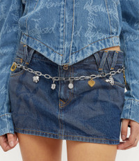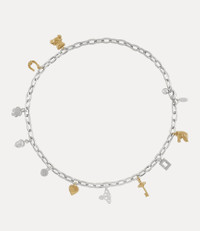 This season's Charm belt draws inspiration from our iconic Charm bag, featuring the house's signature charm motifs - such as the fig leaf, acorn, and orb -suspended from a bold statement chain. Designed with mixed-metal plating, the piece is further adorned with additional charms, including a frame, horseshoe, teddy bear, and key, evoking a sense of nostalgia and sentimentality - central themes of the collection. Code: 8053195066254 - Features mixed metal plating - Lobster clasp fastening - Length 92cm - Polished finish - Made in Italy COMPOSITION - 100% Zamac
