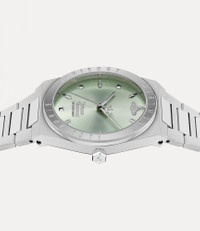 The Charterhouse watch takes its name and inspiration from Charterhouse Street, situated in the famous London jewellery quarter, Hatton Garden. Silver-tone plating Green face Sleek bracelet design 'H' shaped links Push button butterfly clasp Stud detailing Quartz movement Engraved bezel Sunray dials and faceted indices Please note that this watch comes in a gift box and has a two-year guarantee Code: VV244PGRSLXXXGRSL Details & Features Please carefully follow the care instructions in the watch case.