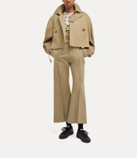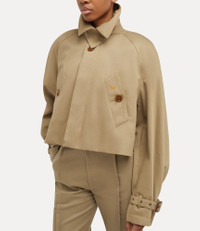 The Cut Off Graziano Trench Coat, made from cotton drill, showcases a voluminous silhouette inspired by the archive 'Cloud' system from the Andreas Kronthaler for Vivienne Westwood Autumn-Winter 2022 collection. This piece is embellished with the season’s VW monogram, embroidered on the pocket in contrasting thread. Designed for a relaxed fit, it features adjustable tabs on the sleeve cuffs and is cut at the waist for a cropped finish. Code: 3301001L-W011Y--CAMEL - Features a collared neckline - Fits slightly oversized - Cropped silhouette - Fully lined - Long sleeves - Buttoned side pockets - Model is 5'11/180cm and is wearing a size S - Made in Italy COMPOSITION - 100% Cotton