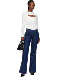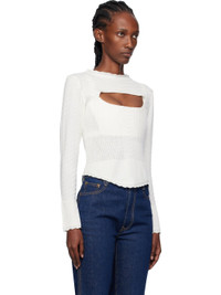 Textured-knit and pointelle-knit wool top. · Semi-sheer · Scalloped edges throughout · Crewneck · Cutout at chest · Logo embroidered at front hem · Curved hem · Rib-knit hem and cuffs Supplier color: Dusty white Body: 100% wool. Trim 1: 100% cotton. Trim 2: 85% polyamide, 15% elastane. Made in Italy 252314F110012