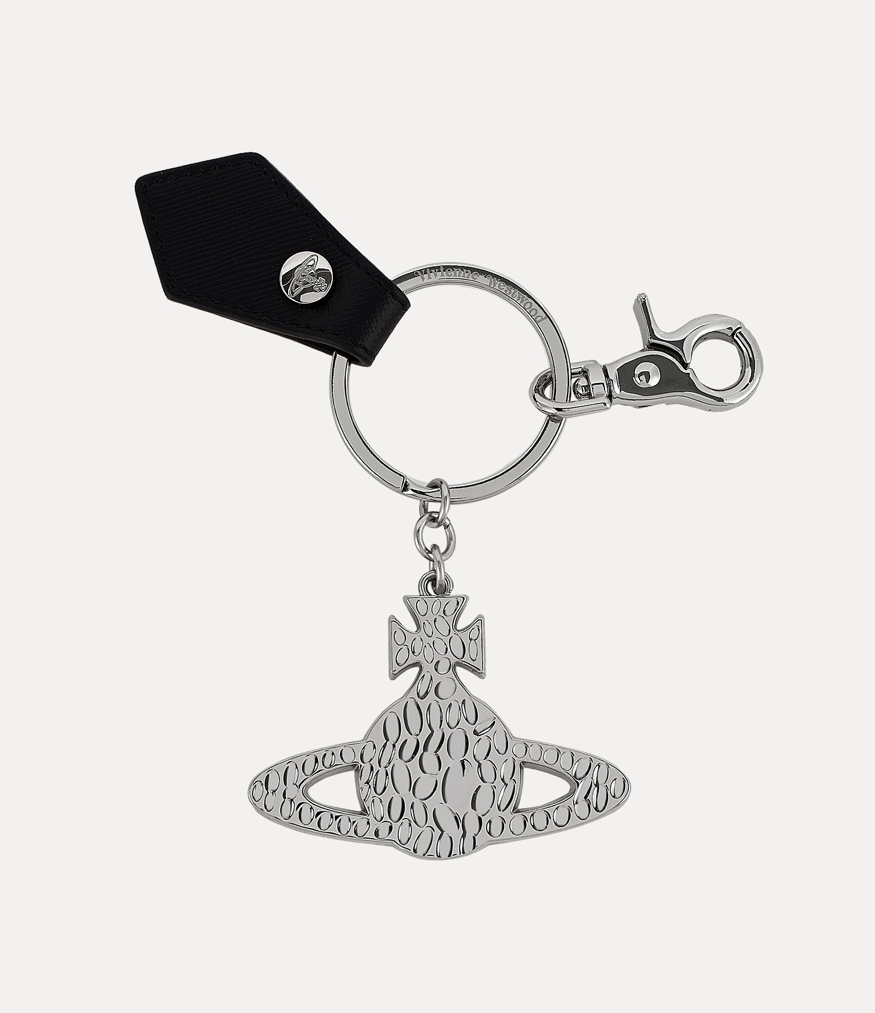 Detailed with an orb charm that features an all-over hammered texture and a silver-tone plating, the Debbie Hammered Orb keyring has a black leather tab, an engraved split-ring feature and a clasp attachment. Material 100% Iron Code: 8203001602114N403 Details & Features Orb dimensions: H 16cm x W 7cm