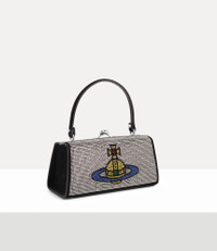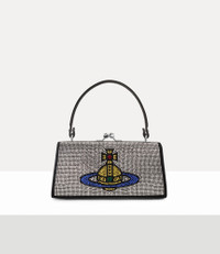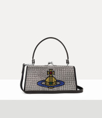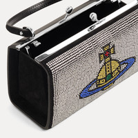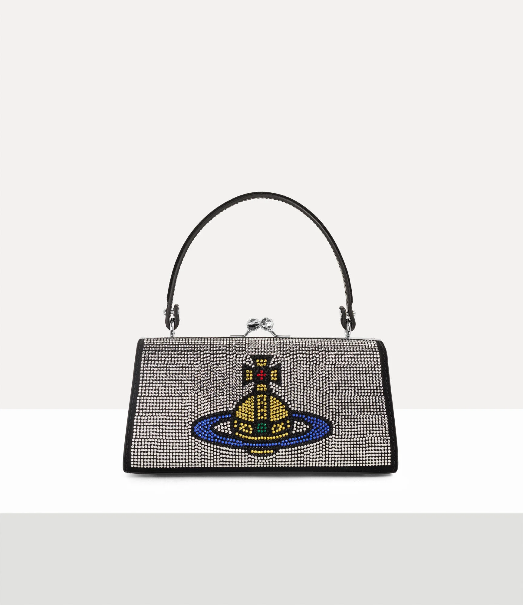 Our Doll XL bag is reimagined with a shimmering diamante finish, reminiscent of the opulent interiors of the Ritz Paris and The Plaza New York. Defined by its compact silhouette, the design is detailed with black leather trims, silver-tone hardware, and our signature kiss-lock fastening. Code: 8053195303953 - Features a top-handle design - Embossed inner panel - Removable strap - Orb-engraved hardware - Moire lining - Frame silhouette - Height 20cm, length 20cm, depth 9cm COMPOSITION - Main material: 100% calf leather - Interior lining: 100% viscose