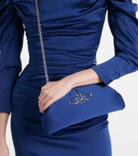 Combining Saturn's rings and the Sovereign's Orb, Vivienne Westwood's logo symbolizes carrying tradition into the future. The Dorothy clutch is crafted from luxurious blue satin and features a chain shoulder strap. Product Details - Material: acetate, viscose - Lining: fabric - Made in China - Designer color name: Navy - Item color: blue - Closure: push-lock fastening - Chain shoulder strap - Hardware color: silver - Item number: P01025800 Size & Fit - Height 13cm-5" - Max. width 29cm-11.5" - Max. depth 4cm-1.5" - Chain length 102cm-40"