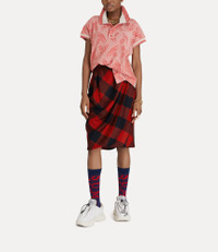 The midi-length Drunken Drape skirt in virgin wool features a button at the waistband. The style is patterned with traditional checked artwork- evoking Vivienne Westwood’s recurring theme of connecting the now with the then. Code: 1K01000B-W00R3--RED-BLACK - Midi length - Button fastening - Side slit - Drunken tailoring system - Asymmetric hem - Drape detailing - Model is 5’11/180cm and is wearing a size 40 COMPOSITION - 100% Virgin wool