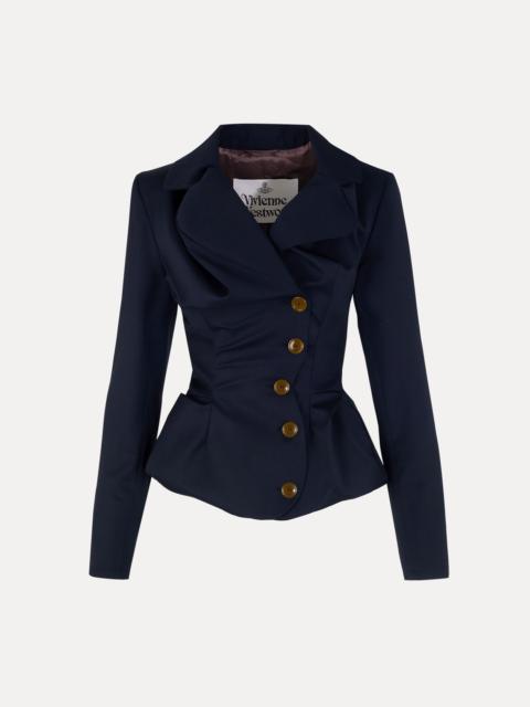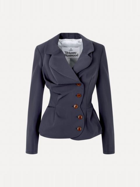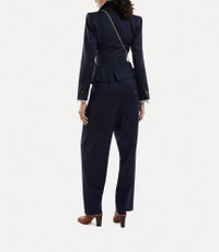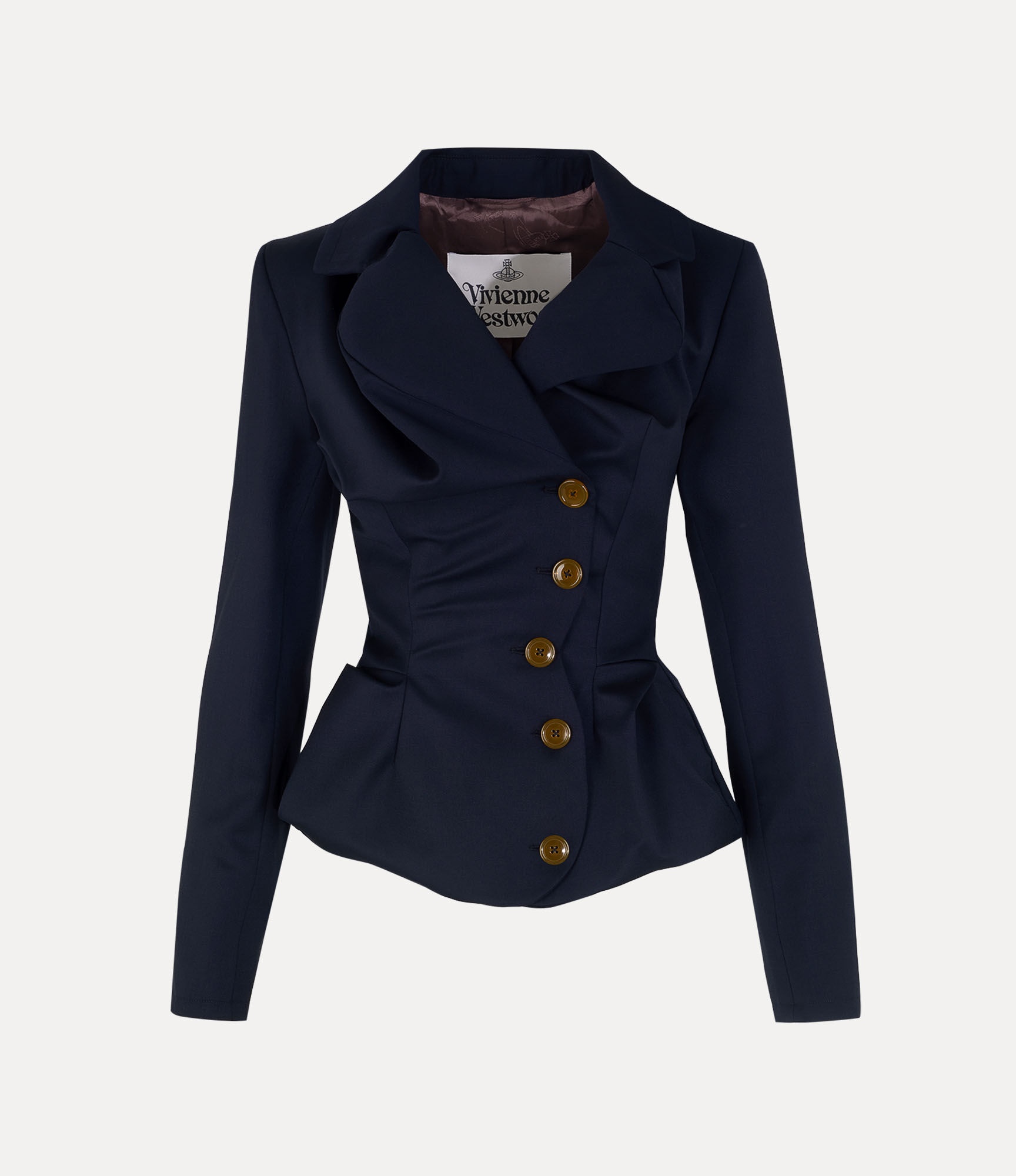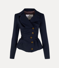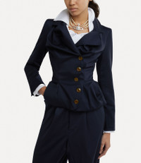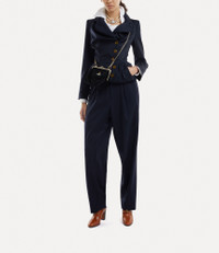 First appearing in the Autumn-Winter 1981 Pirate collection, the 'Drunken Tailoring' system reveals how Vivienne originally subverted traditional tailoring techniques. The Drunken Tailored jacket revives the unique tailoring system with its skewed seams and distorted silhouette, to create a "drunken" draped look on the wearer. Code: 1401006C-W00QN--NAVY - Darting - Off-centre button placket - Discreet shallow front pockets - Interior lining - Notch lapel - Long sleeves - Off-centre placket - Rear vent - The model is 5'11/180cm and is wearing a size 40. COMPOSITION - 100% Wool