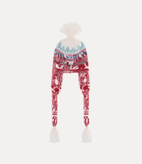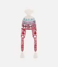 Our Ear Flap Hat is crafted from a soft wool knit, featuring classic extended ear flaps finished with playful tassel ties. Adorned with our heritage all-over Fair Isle jacquard, the design showcases intricate, tapestry-inspired motifs woven throughout. Code: 8053195328611 - Features classic ear flaps - Extended side panels - Large pom-pom at the crown - Long tassel ties - Thick rib-free finish - Soft knitted construction - Unisex design - Made in Japan COMPOSITION - 100% Wool