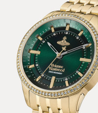 Inspired by the modern architecture in London's East End, our East End watch is made from stainless steel and has a sleek chain-link strap. Plated with a two-tone layer, it features a green face and fastens with a butterfly buckle. Polished plating Made in England Face Diameter: 3.7cm x 3.7cm Code: VV262GRGDXXXGRGD Details & Features Please carefully follow the care instructions in the watch case.