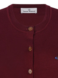 ruched buttoned cardigan Highlights - Red - Orb logo - Button fastening - Round neck - Long sleeves - Ruched detail Made in Italy Composition Virgin Wool 100% Washing instructions Read Manufacturer Guidelines