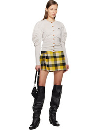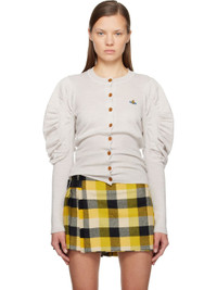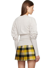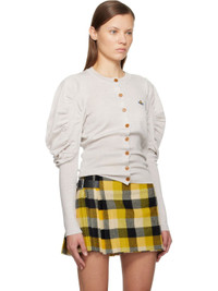 Knit virgin wool cardigan. · Rib-knit crewneck, hem, and sleeves · Button closure · Logo embroidered at chest · Gathering at puff sleeves Supplier color: Grey melange 100% virgin wool. Made in Italy 252314F095015