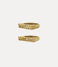 Our Essex ring is crafted from recycled silver and finished with polished gold-tone plating. Featuring two bold, all-metal bands, one spelling ‘Vivienne’, the other ‘Westwood’, the design is accentuated with intricate cut-out details that trace the contours of each letter. Code: 6404018I-01R001--GOLD - Features a polished finish - Bold block-letter design with angular edges - Contoured interior band for comfortable fit - Sculptural lettering raised from the ring base - Can be worn stacked or separately - Hallmarked interior - Unisex design COMPOSITION - Main material: 100% recycled silver - Crystal detailing - Gold-tone plating - We plate all our sterling silver products, as this prevents tarnishing and increases durability.