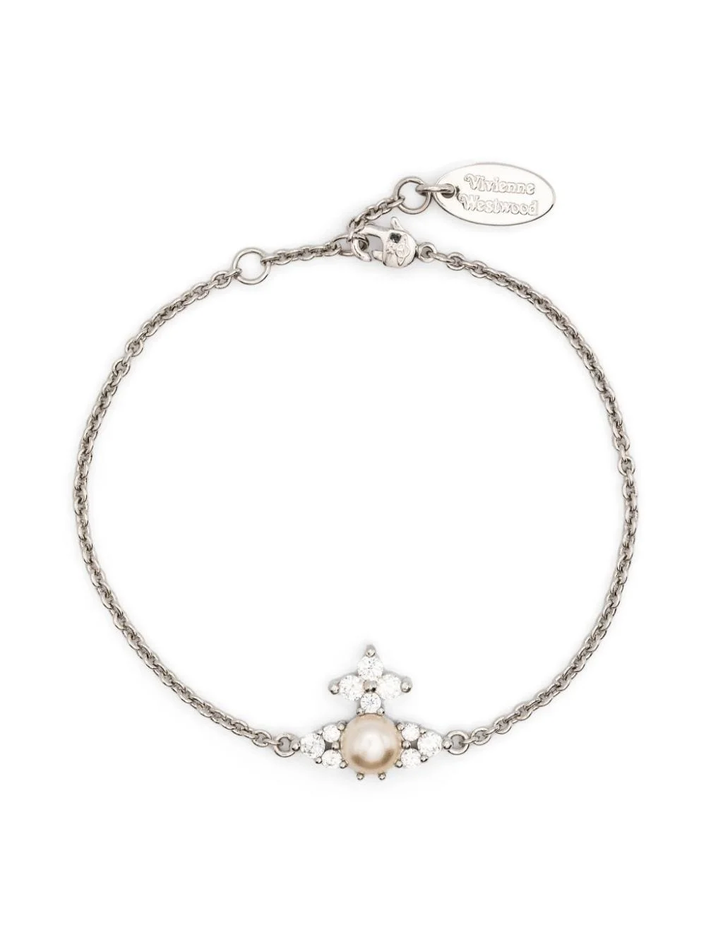 Feodora bracelet Highlights - Silver-tone - Polished finish - Cable-link chain - Signature orb detail - Crystal embellishment - Faux-pearl detailing - Adjustable fit - Logo charm - Lobster claw fastening Imported SIZE & FIT Model measurements Height 6 ft 2 in(1.87 m) Bust/Chest 38.18 in(97 cm) Hips 36.61 in(93 cm) Waist 29.13 in(74 cm) Measurement TOTAL LENGTH 6.69 in(17 cm) WIDTH 0.51 in(1.3 cm)