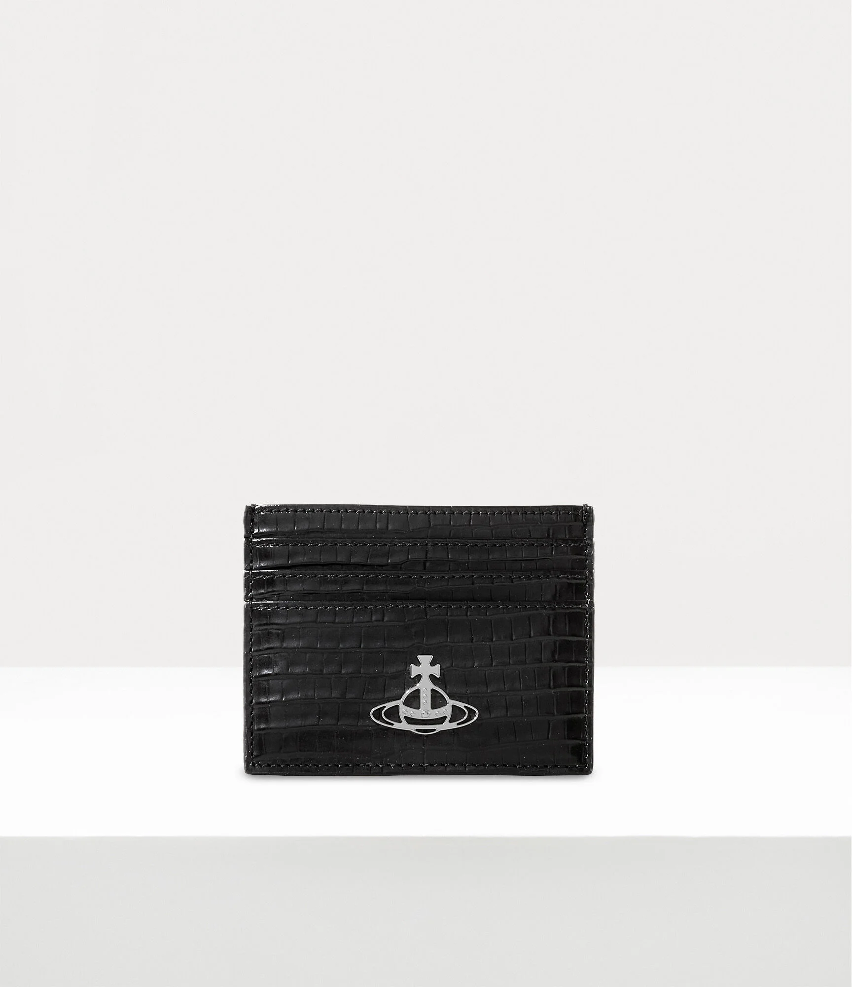 Our Flat card holder features a croc-effect embossed finish, complete with card slots on either side of the design. The piece is embellished with the house's signature 'Line Orb' motif on the front panel, which symbolises tradition, encircled by the celestial rings of Saturn, symbolising the future. Code: 8053195306305 - Features one main card slot - 'Mini' croc-effect embossed leather - Flat silhouette - Compact design - Silver-tone orb branding - Structured edges - Multiple card slots - Tonal stitching - Height 8cm, width 10cm, depth 1cm COMPOSITION - Main material: 100% cow leather - Interior lining: 100% viscose - Silver-tone plated brass hardware