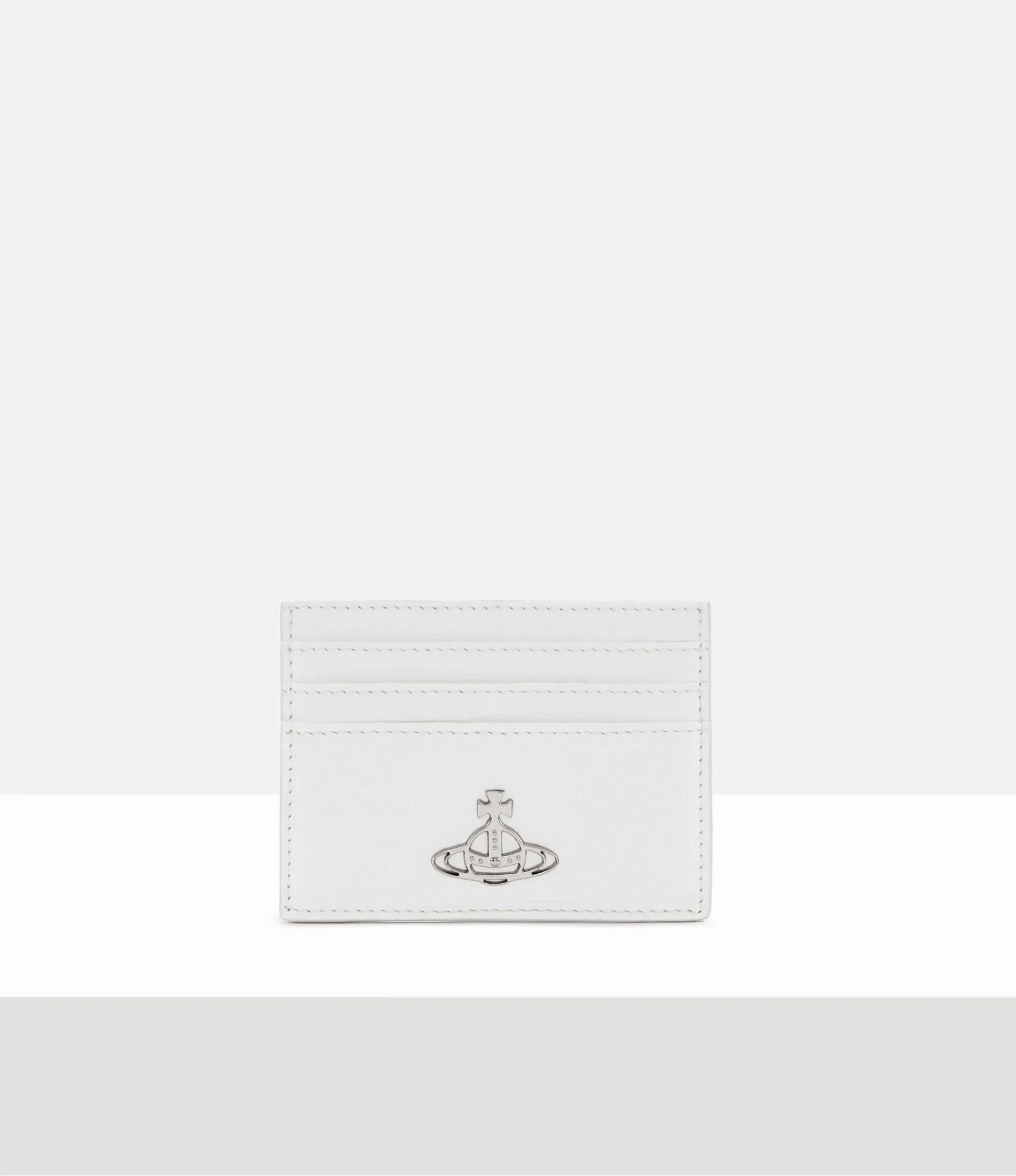 Our Flat card holder features a croc-effect embossed finish, complete with card slots on either side of the design. The piece is embellished with the house's signature 'Line Orb' motif on the front panel, which symbolises tradition, encircled by the celestial rings of Saturn, symbolising the future. Code: 8053195306282 - Features one main card slot - 'Mini' croc-effect embossed leather - Flat silhouette - Compact design - Silver-tone orb branding - Structured edges - Multiple card slots - Tonal stitching - Height 8cm, width 10cm, depth 1cm COMPOSITION - Main material: 100% cow leather - Interior lining: 100% viscose - Silver-tone plated brass hardware